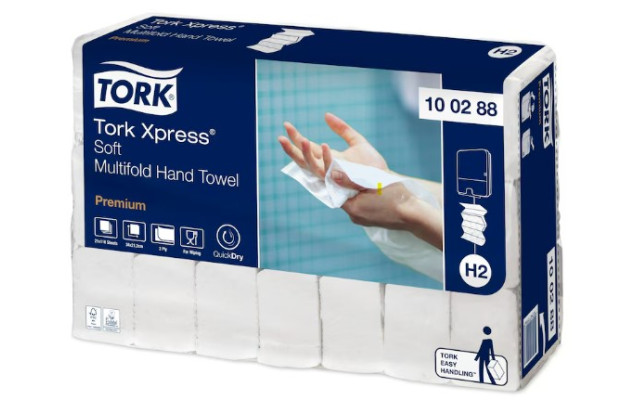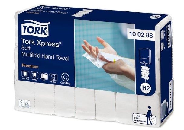 Tork Xpress Mjuk Multifold Handduk är skonsam mot huden med en känsla av hög kvalitet. QuickDry - starkt och högabsorberande papper för mer effektiv avtorkning med mindre avfall. Vit i 2 lager med präglat mönster i form av löv. Passar i Tork Xpress Dispenser Multifold Handduk. Storlek vikt: 8,5x21,2cm Storlek ovikt: 34x21,2cm Multifold M-vikning. H2-system. Innehåll: 21x110st