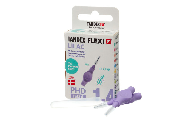 Interdentalborstar flexi. Konisk. Ståltråd: Ø 0,8mm Borste: Ø 3,0-5,0mm PHD: Ø 1,4mm ISO: 4 Färg: Lila Innehåll: 6st