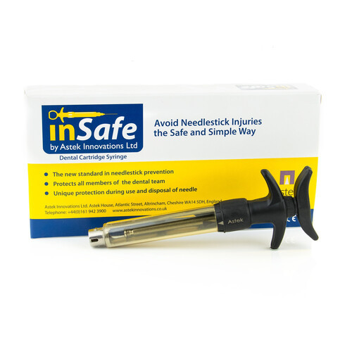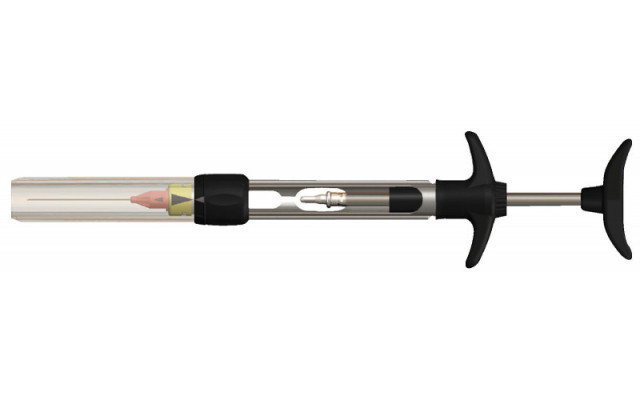 Återanvändbar och autoklaverbar spruta med T-handtag. Integrerad självaspirerande funktion. inSafe ger optimalt skydd mot nålsticksskador. Den specialdesignade sprutan med integrerat skyddslock skyddar nålen under hela proceduren, och den tillhörande kanyllådan kasserar nålarna säkert utan kontakt. Innehåll: 1st