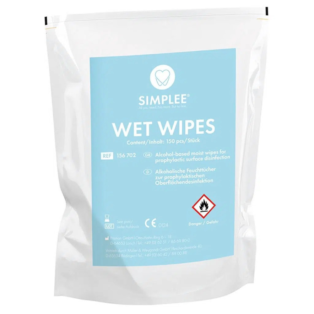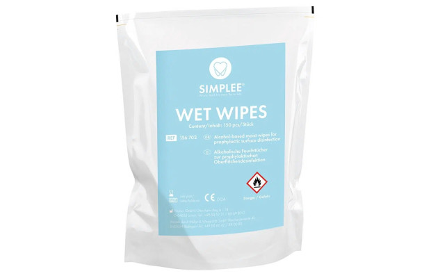 Alkoholbaserade, aldehydfria, färdigimpregnerade torkdukar (20x30cm) för desinfektion av medicinsk och odontologisk utrustning samt ytor. Har en behaglig och fräsch doft. Bakterier och Candida albicans enligt EN 13727, EN 13624, EN 16615 och VAH under smutsiga förhållanden: Konc. 1 min. Tb (tuberkulos) inaktivering (M. terrae, EN 14348, smutsiga förhållanden): Konc. 1 min. AF Innehåll: 2x150st våtservetter