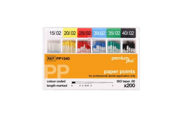 Pappersspetsar avedda för borttag av överflödiga dentala vätskor utr rotkanalen vid endodontisk behandling. Pappersspetsarna är färgkodade för enkel identifiering av ISO storlek samt har längdmarkering. Längdmarkering: 16, 18, 19, 20, 22, 24mm Längd totalt: 28mm Innehåll: 200st