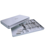 Instrumentlägg till aluminiumbricka, silver, med plats för 10 instrument. Mått: 284x183mm Ej lämplig för termodesinfektorn.