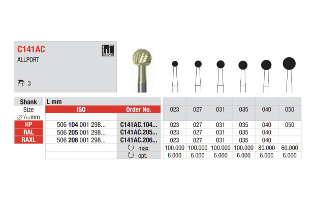 Benfräs i hårdmetall med beläggning av ZrN (zirkonnitrid). För skonsam och kontrollerad avverkning av käkbenet. Fattning: HST Innehåll: 3st