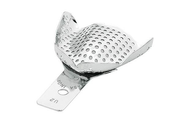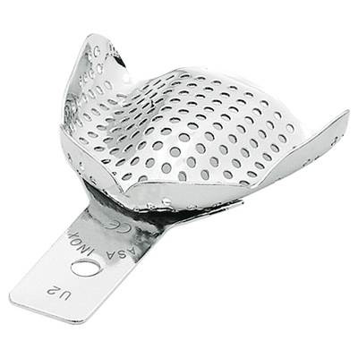 Avtryckssked i rostfritt stål för tandlös överkäke , perforerad. Storlek XS, 54x64 mm Innehåll: 1st