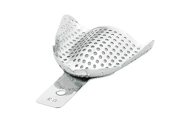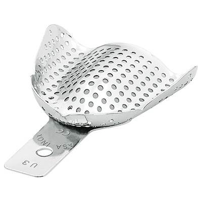 Avtryckssked i rostfritt stål för tandlös överkäke , perforerad. Storlek S, 68x58 mm Innehåll: 1st