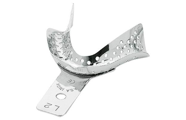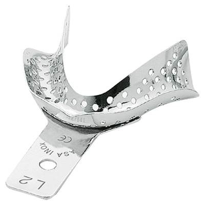 Avtryckssked i rostfritt stål för tandlös undekäke , perforerad. Storlek XS, 67x55 mm Innehåll: 1st