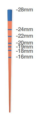 Röntgenkontrasterande guttaperkaspetsar med optimal styvhet för enkel hantering. Är färgkodade enligt ISO standard för visuell identifiering av ISO storlek samt har längdmarkering. Kadmium- och latexfria. Längdmarkering: 16, 18, 19, 20, 22, 24mm Längd totalt: 28mm Innehåll: 200st