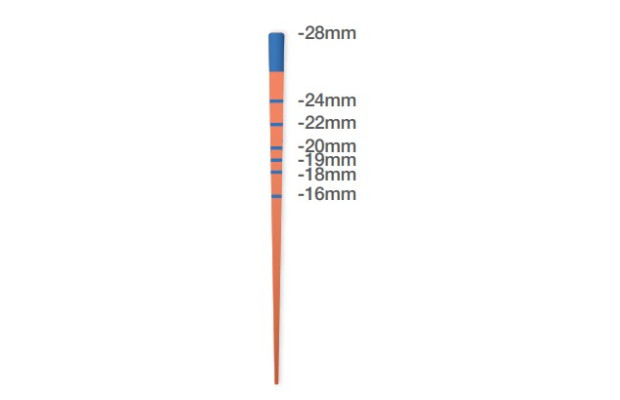 Röntgenkontrasterande guttaperkaspetsar med optimal styvhet för enkel hantering. Är färgkodade enligt ISO standard för visuell identifiering av ISO storlek samt har längdmarkering. Kadmium- och latexfria. Längdmarkering: 16, 18, 19, 20, 22, 24mm Längd totalt: 28mm Innehåll: 200st