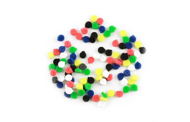 Filstopp i silikon som används för att markera och underhålla filens arbetsländ, med rund design med "svans" Förpackningen innehåller blandade färger: vit, gul, röd, blå, grön och svart. Innehåll: 100st