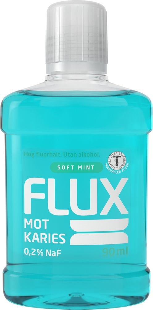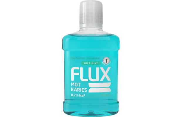 Fluorsköljvätska som stärker tandytan och ger starka tänder. Regelbunden användning av Flux förebygger karies. För bästa effekt bör man skölja med 10ml 1-2 gånger om dagen, som ett komplement till tandborstning med fluortandkräm. Med 0,2% NaF. Utan alkohol. För vuxna och barn över 12 år. Innehåll: 20x90ml
