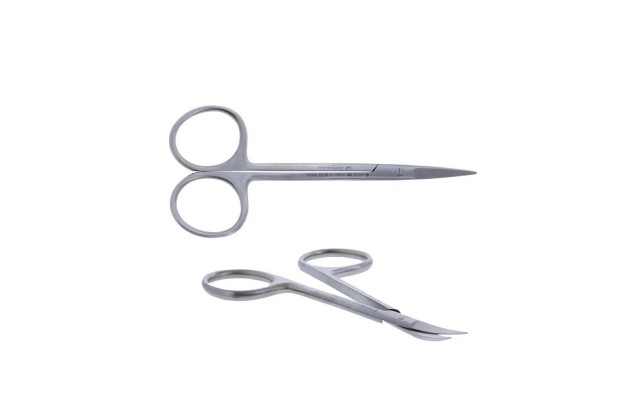 Sutursax Iris böjd i rostfritt stål. För suturer och trimning av mjukvävnad. Innehåll: 1st