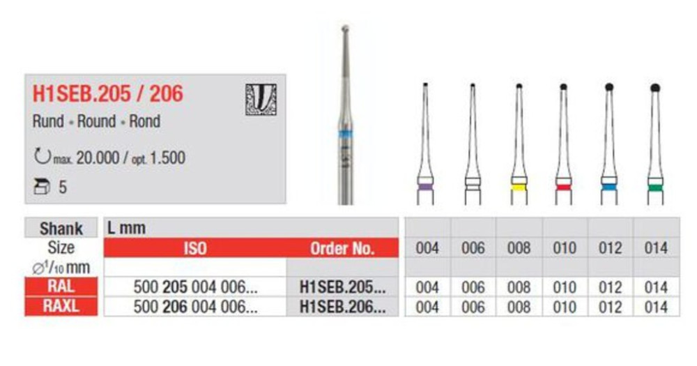 De effektivt skärande borrbladen möjliggör trycklös, minimalt invasiv preparation. Den långa, smala halsen garanterar god synlighet till åtkomsten av cavum. Detta underlättar minimalt invasiv öppning av rotkanalmynningar och exponering av gömda kanaler. Hårdemetall. Total längd: 34mm ISO storlek: 004, Lila ring. Innehåll: 5st
