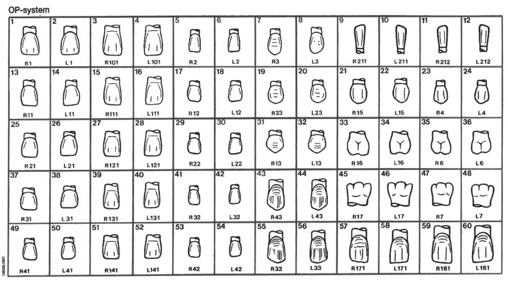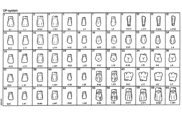 Transparenta kronformar av stark, laminerad plast. Sortiment anterior/premolarer OP-coding. Innehåll: 2x60st