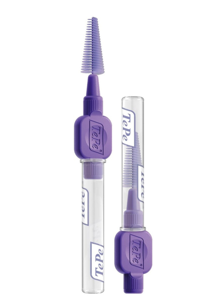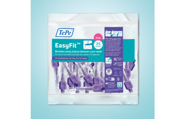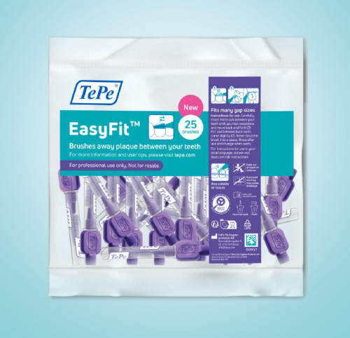 TePe EasyFit mellanrumsborste har en konisk form för att passa många mellanrum. Den har ett stabilt och ergonomiskt skaft, samt en lång borstlängd med plastöverdragen metalltråd. Skyddshylsan kan även användas som skaftförlängare. För att se tydlig skillnad från TePe's mellanrumsborstar original så är borststråna färgade. Finns i två storlekar - S/M och M/L. Borstskaftet och hylsan är tillverkade av förnybara material enligt massbalansmetoden. 100% av förpackningen består av förnybart och/eller FSC-certifierat material. Innehåll: 25st