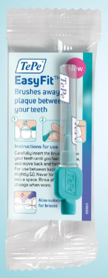 TePe EasyFit mellanrumsborste har en konisk form för att passa många mellanrum. Den har ett stabilt och ergonomiskt skaft, samt en lång borstlängd med plastöverdragen metalltråd. Skyddshylsan kan även användas som skaftförlängare. För att se tydlig skillnad från TePe's mellanrumsborstar original så är borststråna färgade. Finns i två storlekar - S/M och M/L. Borstskaftet och hylsan är tillverkade av förnybara material enligt massbalansmetoden. 100% av förpackningen består av förnybart och/eller FSC-certifierat material. Innehåll: 120st separat förpackade prover