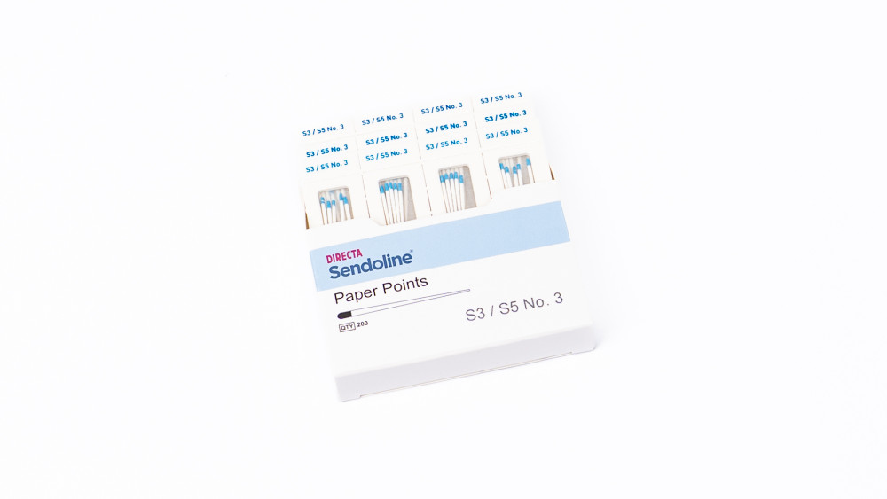 Pappersspetsar för att suga upp vätska under rotbehandling. Anpassade till Sendoline S3 och S5 Rotary Files. Innehåll: 200st