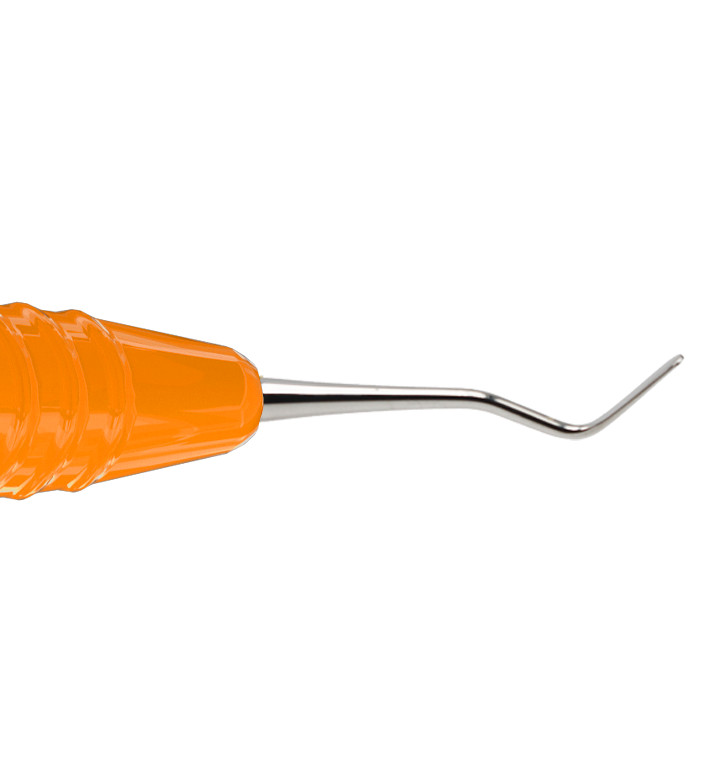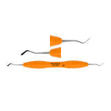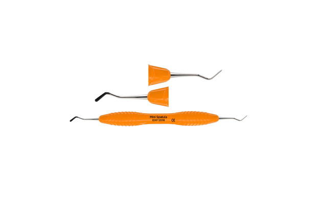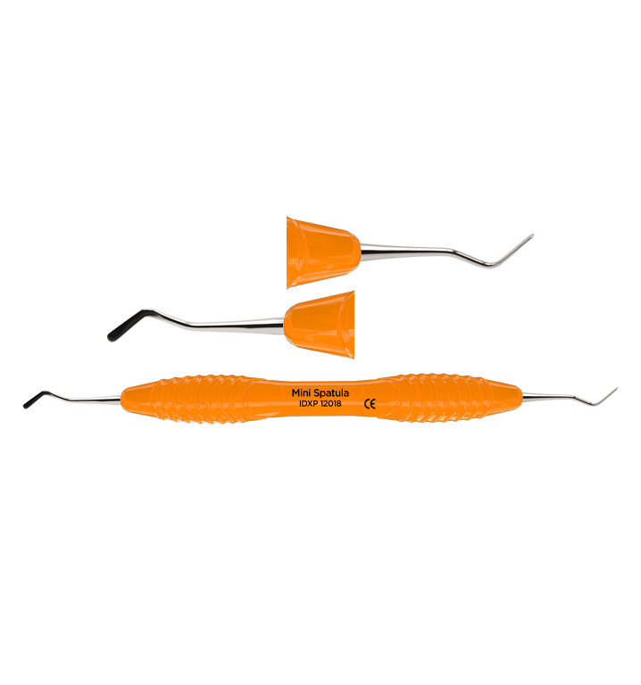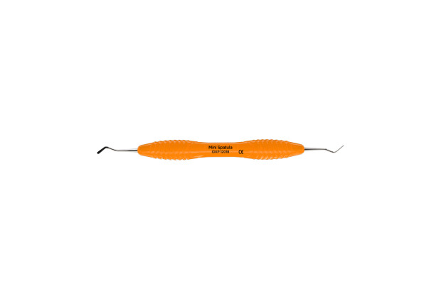 Dubbeländat planinstrument av rostfritt stål för modellering och placering av tandfyllnadsmaterial. Ergonomiskt silikonhandtag, Ø 13,5mm. Innehåll: 1st
