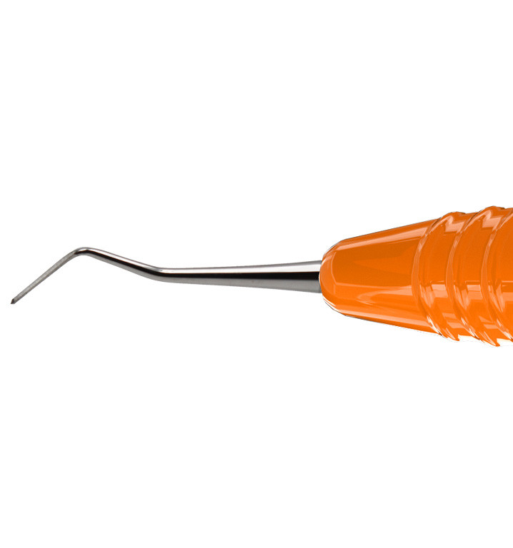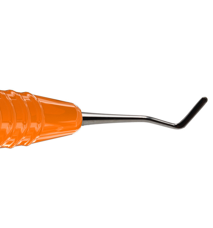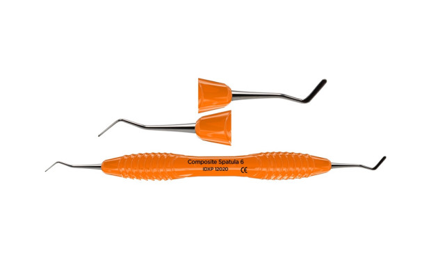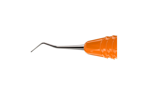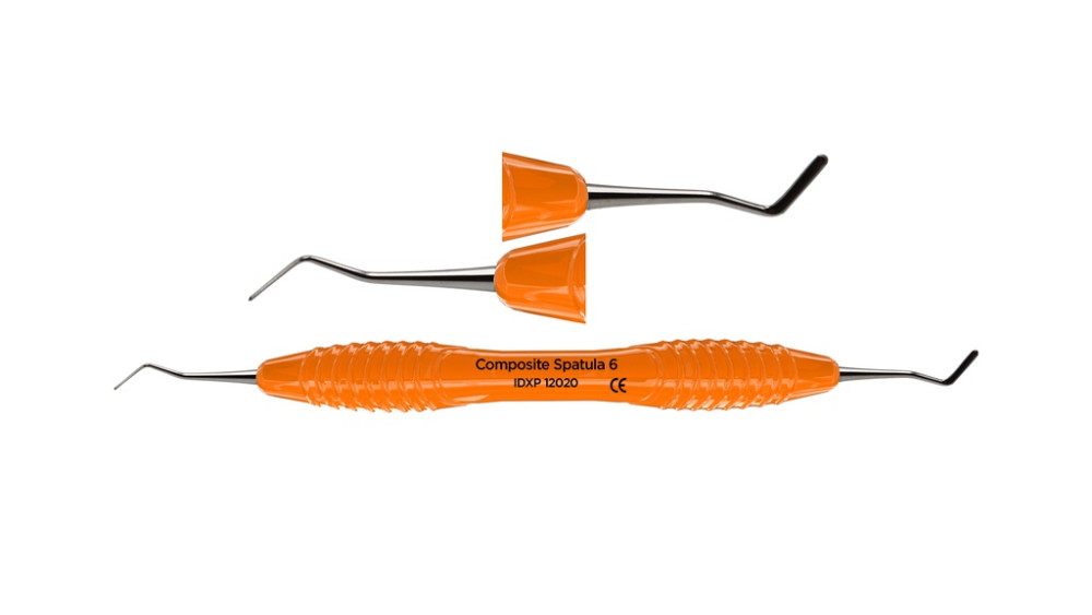 Dubbeländat planinstrument av rostfritt stål för modellering och placering av tandfyllnadsmaterial. Ergonomiskt silikonhandtag, Ø 13,5mm. Innehåll: 1st