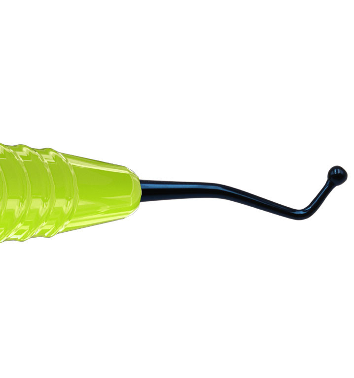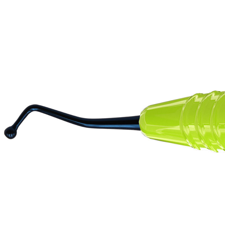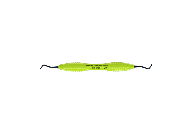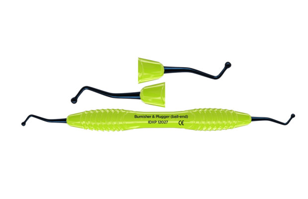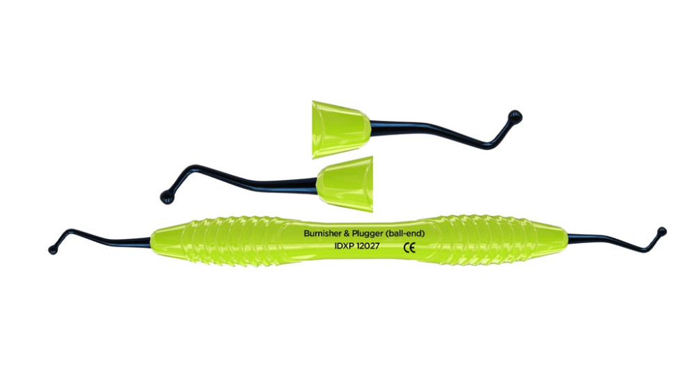 Dubbeländad kulstoppare för bl.a. kondensering av tandfyllnadsmaterial. Titanbelagt instrument som är lätt och hållbart, samt ger en non-stick effekt. Ergonomiskt silikonhandtag, Ø 13,5 mm. Innehåll: 1st