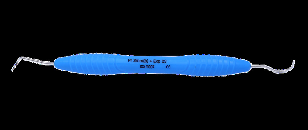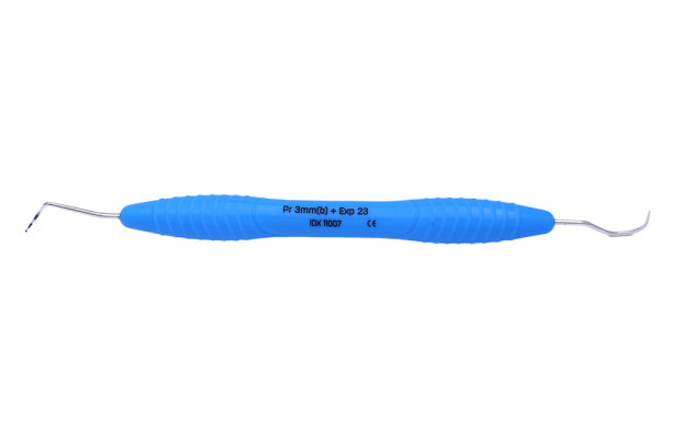 Dubbeländad böjd undersökningssond och CP12 fickmätningssond med kula av rostfritt stål och gradering 3-6-9-12 mm. Ergonomiskt silikonhandtag, Ø 11,5mm. Innehåll: 1st