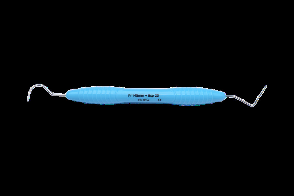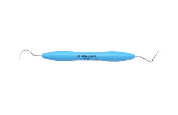 Dubbeländad böjd undersökningssond och CP15 fickmätningssond av rostfritt stål. Gradering 1-15mm. Ergonomiskt silikonhandtag, Ø 11,5mm. Innehåll: 1st