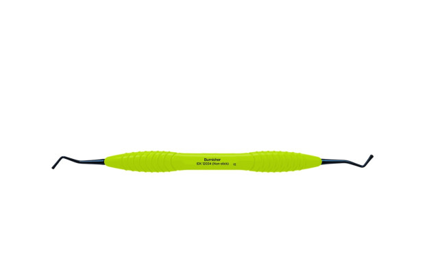 Burnisher för olika typer av dentala restaurationer. Titanbelagt instrument som är lätt och hållbart, samt ger en non-stick effekt. Ergonomiskt silikonhandtag, Ø 11,5mm. Innehåll: 1st