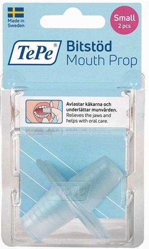 TePe bitstöd används av sjukvårdspersonal och anhöriga som utför munvård på personer som har svårt att gapa. Bitstödet placeras på vårdgivarens finger eller tumme och förs fösiktigt in mellan käkarna. Personen som får vård kan vila käkarna mot bitstödet under munvården. Rengör bitstödet i diskmaskin eller desinfektor (max 90°C), upp till 30 gånger om det används för flera personer. Om det används för en och samma person så räcker det att skölja och torka mellan varje användning. Vid daglig användning bör bitstödet bytas ut varje månad - eller tidigare om det visar tecken på slitage. Innehåll: 2st