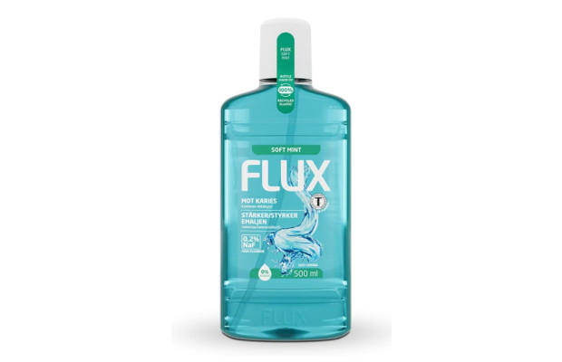 Flux Soft Mint har en hög fluorhalt om 0,2% NaF , som ger starka tänder och förebygger karies. Smaken är Soft Mint. Denna är för vuxna och barn över 12 år. Flux Soft Minte innehåller inte alkohol. Flaskan har en doseringspump som ger en exakt dosering. Innehåll: 1x500ml
