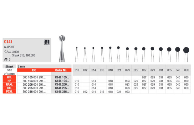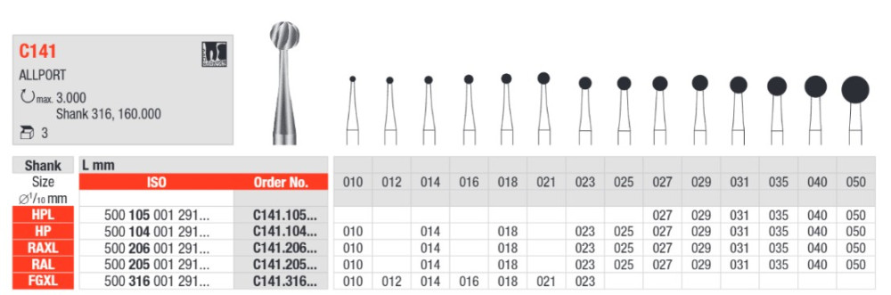 Runt borr/fräs i hårdmetall för kirurgi. Allport. Fattning: HST förlängd Längd: 65mm Innehåll: 3st