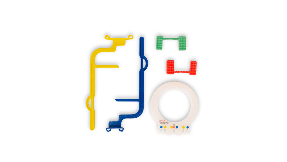 TrollByte Kimera hållare för intraorala bildplattor. Stabila och färgkodade. Gul: Apikal molar/liggande BW Blå: Anterior apikal/stående BW Röd: Liggande BW Passar de flesta vanligt förekommande bildplattorna på marknaden. För bildplatta storlek 0, endo kit. Innehåll: 1st bildplattehållare gul, 1st bildplattehållare blå, 1st endoblock grön, 1st endoblock röd, 1st siktring