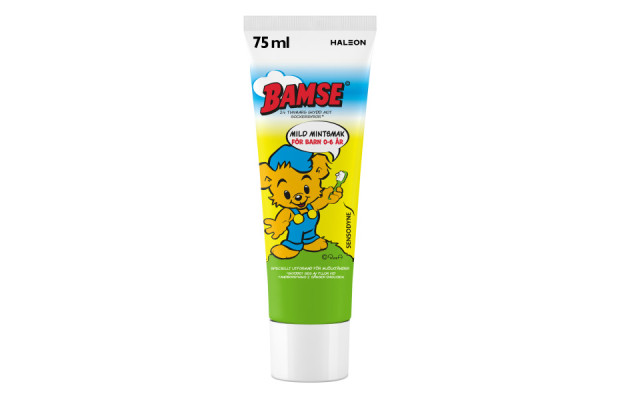Bamse barntandkräm har utvecklats speciellt för barn 6 år och yngre. Tandkrämen har den fluorhalt som rekommenderas för att effektivt förebygga karies och den rengör varsamt barnets tänder. Bamse tandkräm hjälper till att motverka plack och tandsten och att stärka tandemaljen. Fluorhalt: 1000ppm F Innehåll: 12x75ml